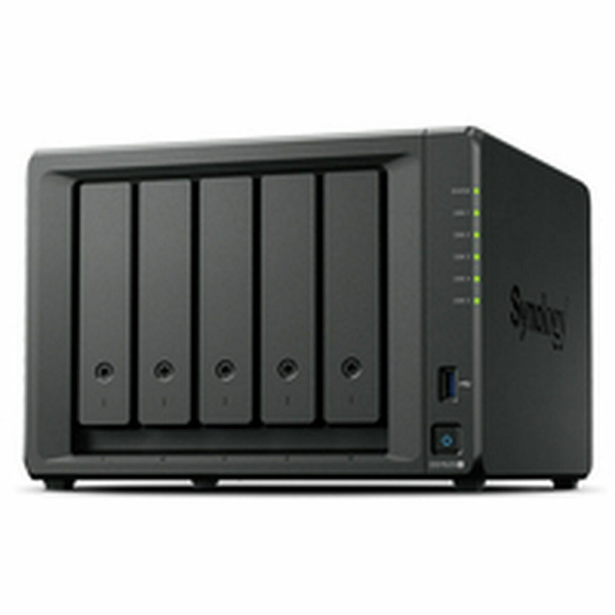 The Synology DS1525+ is an advanced NAS network storage device designed to offer an ideal balance of performance, capacity, and versatility. Equipped with a 4-core 2.2 GHz AMD Ryzen V1500B processor featuring a hardware encryption engine, it ensures efficient data management and advanced security in business and professional environments. It includes 8 GB DDR4 ECC SODIMM memory, expandable up to 32 GB, enhancing stability and performance in multitasking and intensive use. This NAS has five bays for 3.5" SATA hard drives or 2.5" SATA SSDs, plus two slots for M.2 NVMe 2280 SSDs that accelerate cache storage, optimizing data access speed. It supports up to 15 drives by adding two expansion units (DX525), enabling scalable storage growth. For connectivity, this model features dual 2.5GbE RJ-45 LAN ports, multiple USB 3.2 Gen 1 ports, a USB Type-C port, and expansion ports, offering flexibility to connect external devices and extend functionality. Built with a black metal casing for durability, it includes a ventilation system with two 92 mm fans that adjust speed based on usage mode (full speed, cool, or quiet), maintaining a very low noise level of 22.60 dB(A) during operation. It also has front LED indicators with adjustable brightness and supports scheduled power on/off and wake-on-LAN/WAN, features aimed at improving energy management and device availability. Its compact dimensions (166 x 230 x 223 mm) and light weight (2.67 kg) facilitate integration in professional and home spaces. The Synology DS1525+ operates within a temperature range of 0ÂşC to 40ÂşC and holds international certifications that guarantee quality and safety across multiple regions. Overall, this NAS combines a solid architecture, high capacity, expansion options, and advanced connectivity, making it a reliable and scalable solution for data storage and management in complex networks.