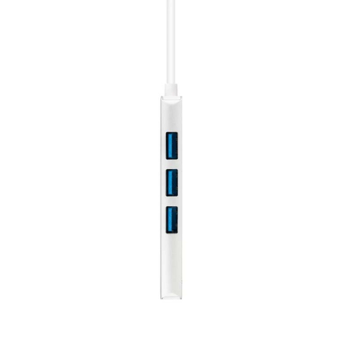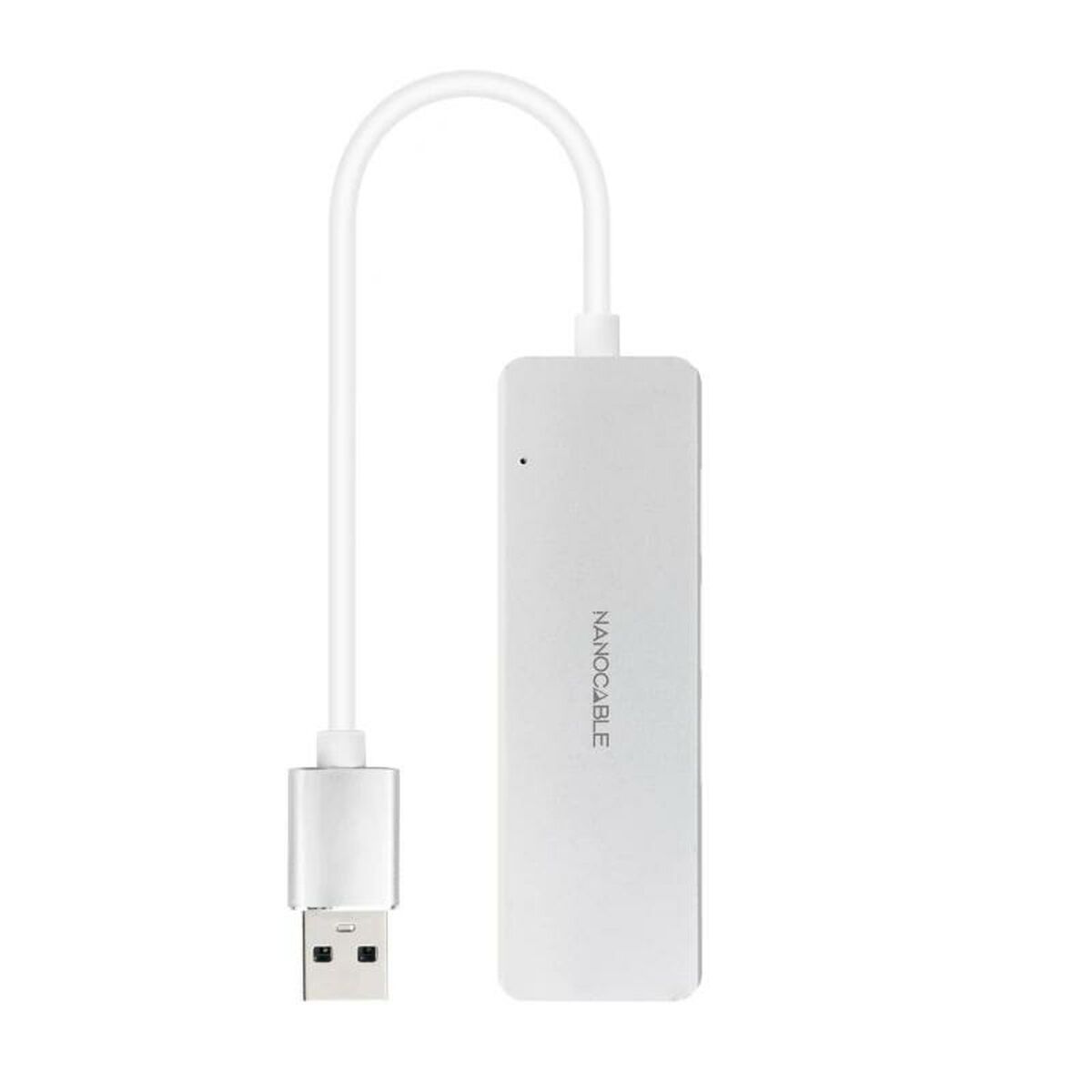 The NANOCABLE USB Hub is a connection hub designed to easily expand device connectivity through four USB-A 3.2 Gen 1 (3.1 Gen 1) ports, ensuring efficient and fast data transfer compatible with numerous USB peripherals and accessories. Its compact and functional design, featuring a silver aluminum body and an integrated 18 cm cable, offers a practical and durable solution for those needing to increase available USB ports on desktops, laptops, or workstations. With 4 USB 3.0 connections, this hub supports high transfer speeds, ideal for connecting external drives, mice, keyboards, USB sticks, or other compatible devices without sacrificing signal quality or stability. Its wired nature provides a solid connection free from typical wireless interference, enabling a more efficient work or entertainment environment. Although simple, this hub offers a reliable and practical solution for managing multiple USB peripherals simultaneously, adapting to everyday digital connectivity needs. It is a suitable choice for users who require increased USB input/output capacity without complications or complex setups.