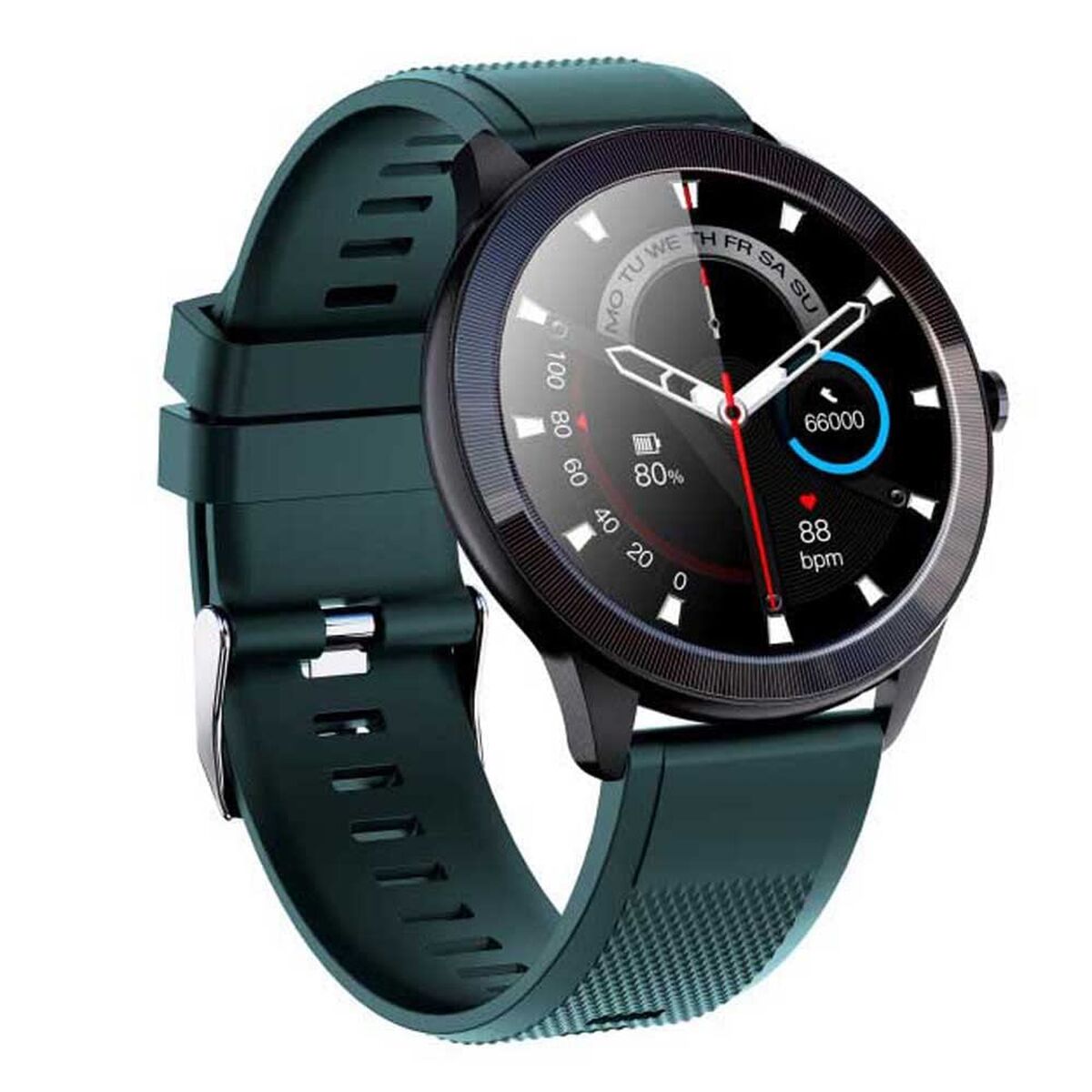 The LEOTEC LESW32V is a versatile and durable smartwatch designed for users seeking precise and comfortable monitoring of daily and sports activities. This model features a 1.28" IPS color touchscreen with 240 x 240 pixel resolution, delivering clear, sharp visuals even on the move. Available in black and green, it includes a lightweight, removable silicone strap that fits various wrist sizes for all-day comfort. Its 32 mm round case and light 42-gram weight make it suitable for both sports and everyday use. With IP68 protection, it is highly resistant to water, dust, shocks, and scratches, allowing worry-free use in tough conditions. The device offers optical heart rate sensors for automatic and manual monitoring, as well as blood oxygen measurement, pedometer, calorie burn calculation, distance tracking, and multi-sport activity monitoring. It also tracks sleep quality and lets you set personal goals to improve overall well-being. Bluetooth 5.0 connectivity ensures fast syncing with Android and iOS, receiving smart notifications, anti-vibration alerts, and remote control for phone camera and audio playback. Its 200 mAh lithium polymer battery provides solid autonomy and recharges easily via magnetic connector. The LEOTEC LESW32V is a balanced, practical choice for those seeking a robust, functional smartwatch with a modern design for both sports and daily life.
