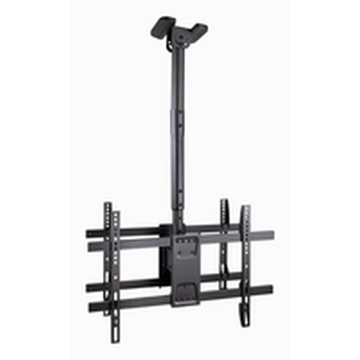 The TooQ universal telescopic ceiling mount is designed to provide a secure and adaptable installation for medium to large TVs, compatible with screens from 43" to 86". Made of durable steel and finished in black, this mount ensures stability and longevity, supporting a maximum weight of up to 100 kg, covering a wide range of current TV models. Its telescopic design allows height adjustment of the screen according to space and user needs, optimizing viewing without compromising safety. This ceiling mount is especially suitable for environments where freeing up wall or furniture space is required, such as offices, meeting rooms, or homes with particular layouts. Additionally, its robust structure facilitates installation and ensures a firm anchor, providing confidence in the support of audiovisual equipment. The combination of steel material with a functional design makes this mount a reliable and versatile option for those seeking a fixed, adaptable solution for large TVs in both domestic and professional settings. Overall, the TooQ universal telescopic ceiling mount offers a balanced proposal of strength, capacity, and versatility designed to maximize comfort and space utilization.