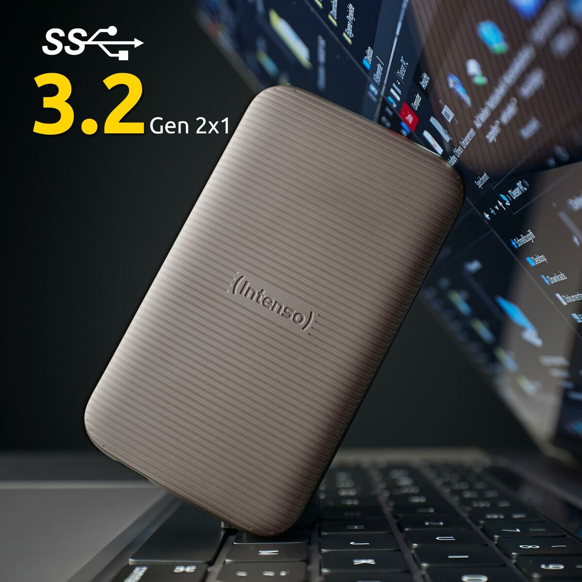 The INTENSO TX500 is a next-generation external hard drive that combines fast, reliable storage with a design focused on durability and portability. This device features a 1 TB SSD, offering ample capacity to store multimedia files, documents, and programs with speeds significantly higher than traditional hard drives. Its connection via USB 3.2 SuperSpeed Gen 2x1 (10 Gbit/s) and compatibility with USB-C ensures fast and efficient data transfers, reaching up to 1000 MB/s, greatly reducing copying and access times. Thanks to its rubber-coated surface, the TX500 offers enhanced shock resistance of up to 1500 G for 0.5 ms, protecting data during transport or demanding use. With compact dimensions of 94 x 54 x 9.5 mm and a lightweight design, it is ideal for users who need to carry their data without sacrificing space or security. Its low power consumption and silent operation guarantee efficiency in any environment, compatible with operating systems such as Windows 8 and later and MacOS 10.x. Additionally, the exFAT file format facilitates interoperability across platforms without file size limits. The robustness, speed, and compatibility of the INTENSO TX500 make it an optimal solution for professionals and users who value both performance and data protection. This device represents a balance of advanced technology and functional design in the external hard drive market.