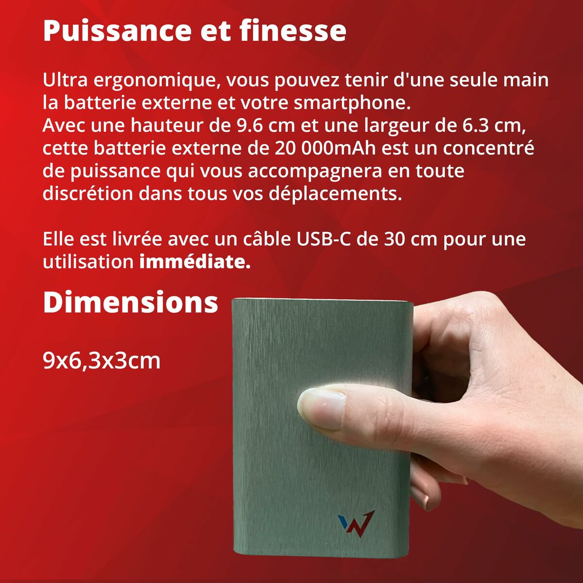 The Wonder WX20 from the brand Wonder is a portable powerbank designed to provide an efficient and practical external charging solution with a high capacity of 20000 mAh, ensuring multiple recharges for mobile devices during travel or situations without access to a traditional power source. This device features a silver (metallic) finish with gray details, combining a modern look with discretion to suit various personal styles. It includes a USB-C connection, a standard that guarantees compatibility with a wide range of current smartphones, tablets, and other electronic devices, also allowing stable and safe power transmission. Its compact and portable design emphasizes its role as a portable charger, making daily transport and use anywhere easy. This powerbank supports a 10W power output, providing a suitable charging speed to keep devices running without long waits. Its construction as an external battery makes it an essential accessory for those who need extended autonomy on trips or days away from home. Additionally, it includes a power cable to facilitate recharging the powerbank itself, enhancing its functionality and convenience. The Wonder WX20 combines capacity, connectivity, and design that meet today’s mobility and continuous power needs, positioning itself as an effective and practical tool for users requiring reliable and portable energy.