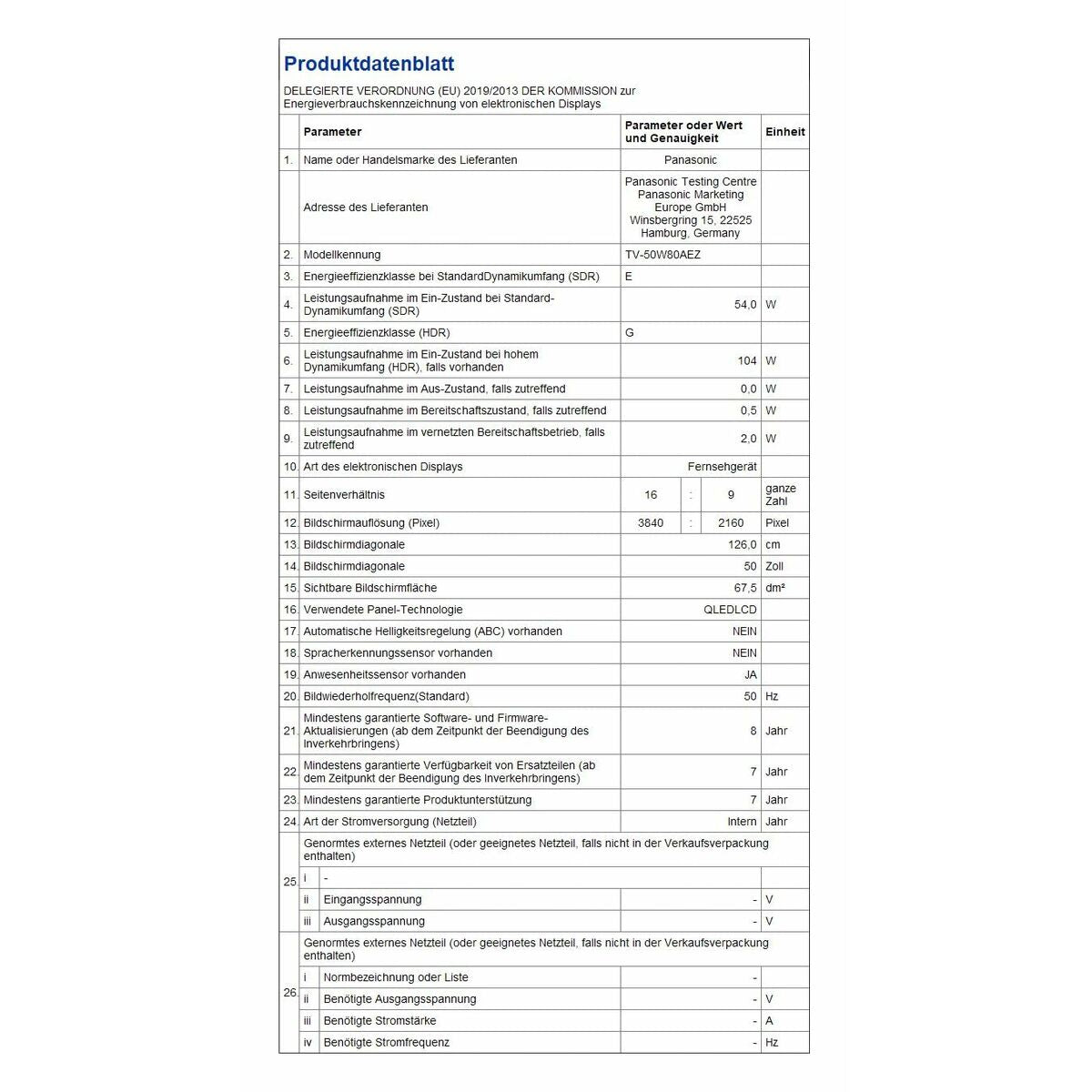 Smart TV Panasonic TV50W80AEZ 50 50" 4K Ultra HD HDR QLED