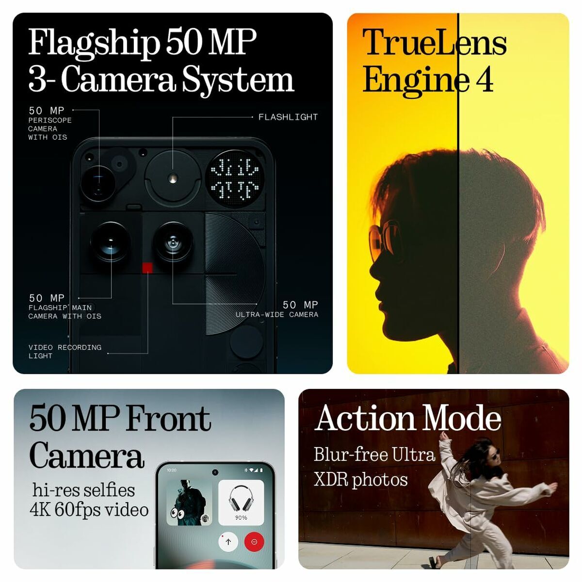 The Nothing Phone 3 5G by Nothing is an innovative smartphone featuring advanced capabilities designed to meet the needs of demanding users. This model boasts an impressive 6.67-inch display with a 1260 x 2800 pixel resolution, delivering an immersive and detailed visual experience for both browsing and multimedia entertainment. Powered by the robust Qualcomm Snapdragon 8s Gen 4 processor up to 3.2 GHz and running Android 15, the device ensures smooth performance, efficient background task management, and compatibility with the latest apps, adapting to any intensive usage scenario. The Nothing Phone 3 5G offers 12 GB or 16 GB RAM configurations, paired with 256 GB of internal storage, providing ample space for files, apps, and photos without storage concerns. It also features a triple camera system with a 50 MP main rear camera and autofocus, capturing sharp images even in low-light conditions. The dual SIM slot allows efficient management of personal and professional lines, while 5G connectivity ensures ultra-fast downloads and seamless streaming. Other key features include a 5150 mAh battery for extended daily use, an ambient light sensor for automatic brightness adjustment, USB-C for fast charging and data transfer, and global navigation via GPS. The device comes in an elegant black color, weighs a balanced 218 grams, and includes a manufacturer’s warranty, upholding Nothing’s standards of quality, durability, and reliability. This model is a versatile choice for those seeking advanced technology, next-generation connectivity, and a distinctive design in their mobile phone.
