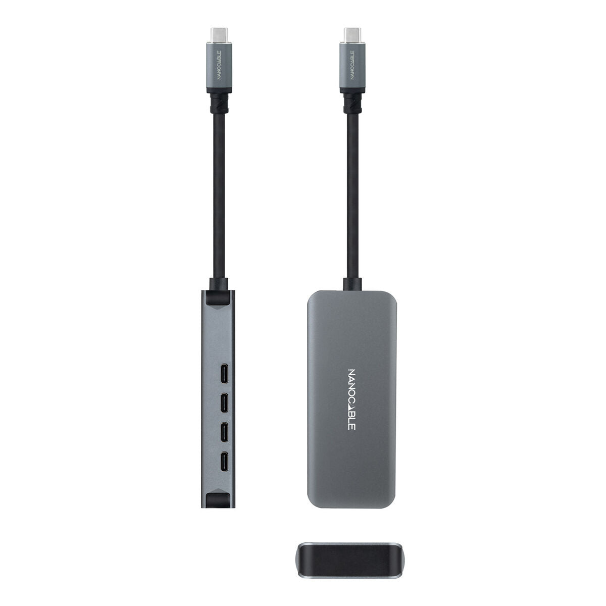 The Nanocable HUB USB-C/M to 3xUSB-C/H ALUMINUM 10 cm USB Hub is a compact and durable connectivity device designed to expand the capabilities of your USB-C equipped devices. Made of aluminum with a gray finish, it offers a sturdy structure and a sleek design that fits easily into any setting. This hub features a male USB-C connector that plugs into your computer or main device and includes four USB 3.2 Gen 1 female Type-C ports, allowing you to connect up to four USB-C devices simultaneously with data transfer speeds of up to 5 Gbps. Its USB 3.2 technology ensures high efficiency and compatibility with modern devices, ideal for fast file transfer, peripheral connection, or charging compatible devices. Additionally, it is a plug-and-play solution requiring no software or driver installation, fully compatible with Windows, MacOS, and Linux operating systems. With its 10 cm length, the cable offers an optimal balance between functionality and portability, making it easy to carry and handle without taking up excessive space. It also complies with quality and safety standards such as RoHS and CE, ensuring a reliable and environmentally friendly product. In short, this hub is a practical and efficient option for users needing to expand their USB-C connectivity with a robust and versatile product, maintaining maximum transfer speed and compatibility.